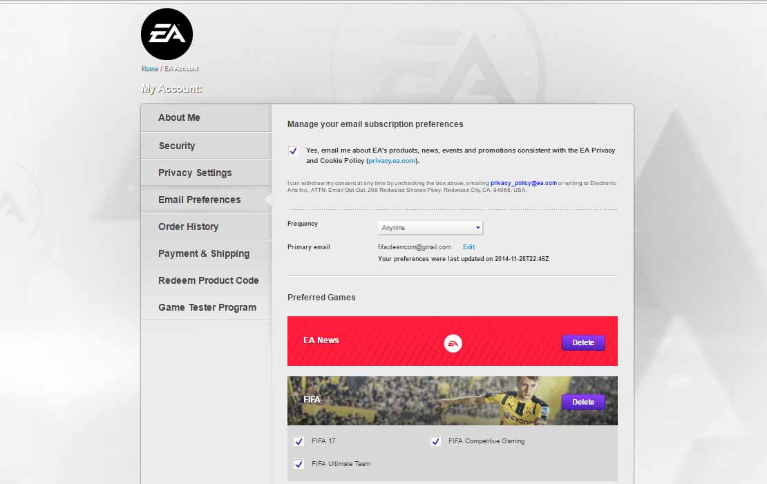 5) Abaixo das ‘Preferências de Contacto’ marque a caixa ‘Contactar-me para produtos da EA, notícias, eventos e promoções’;